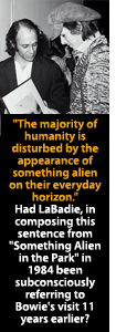 The fact that they couldn't relate to what they saw was like a slap in the face, a personal insult. It really wasn't all that different from what might be the reaction of conservative Southern adults if they happened to wander by accident into the ambisexual, ambiracial, teenage dream movie, "Purple Rain." The majority of humanity is disturbed by the appearance of something alien on their everyday horizon."