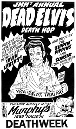 Tuesday August 16th. 9 p.m. Murphy's, 1589 Madison, Filmmaker John Michael McCarthy hosts an Elvis tribute concert featuring the goth sounds of SUN SIK (fronted by Eldorado Del Rey from the Ruckus), the Memphis all-girl group the ZIPPIN PIPPINS (Elvis' favorite roller coaster at Liberty Land Amusement Park) and - rescued from an estate sale for $10 - the Super 8 home movies of the late IRVIN LANSKY, longtime hair care specialist and a member of the family that clothed Elvis for decades. $5 admission.