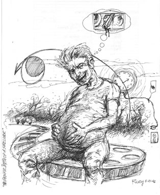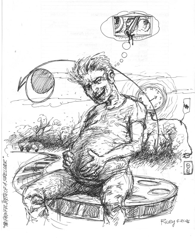 Joe Riley's death comes as a complete and absolute shock. He apparently had a heart attack ("ascemic heart disease"), a shortage of oxygen to his heart. Joe passed away on Wednesday, September 26th. He was 43 but people who believe in Monsters don't really die. I know Joe through our collaborations together via shared interest in comic book /hot rod/monster culture. I had spoken with Joe in the Fall of 2006 to get advice on the little four minute Cadavera short Wheat and I were making. He and starlet Cori emailed each other about the best make-up applications for her 'dead look' as Cadavera. Joe and I didn't stay in great touch with each other but when we did talk, we talked for hours. Our last conversation was about the completed Cadavera short (he thought Cori's look was "dead-on"), his hoped-for 'overdue' Rat Fink feature to begin, and the hope that we could work on it together. If Joe Riley had gotten his way then Big Daddy Roth's RAT FINK would be hanging in the Louvre right next to the MONA LISA. I first met Joe in the late eighties at the Dallas Fantasy Fair comic book conventions. I was lucky (and surprised) to get two original drawings out of him (and I was the subject matter!) I have several videos of his psychotronic influenced HYPNOTIC EYE cable show. I always referred to him as a "Tex-Zen" for his ability to be extremely philosophical, but you knew it was coming from a Texan. I ran him through the ringer on SORE LOSERS film shoot. See his article on the making of the film. ![]() Director JMM gives birth to his movie THE SORE LOSERS (by Joe Riley) |
