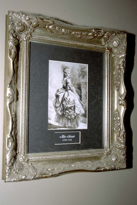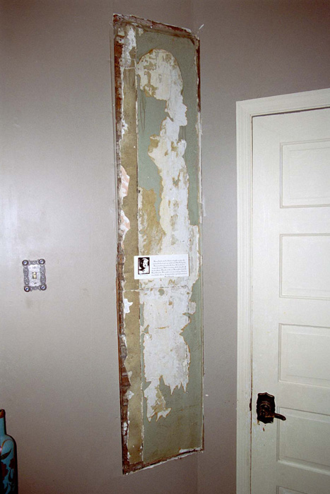 Marion not only left the impression on the wall, she covered it in plexi-glass! After Marion passed in 1989, her family rented the house but all the renters had to respect the sanctity of Marie Antoinette. When I first heard this tale by one of Marion's relatives, I had to see this image of Marie Antoinette, an image that Marion would awake to, and the last thing she would ever see. Photographer Dan Ball and I knocked on Marion's door one day in 2004 and a black lady opened up. I asked her if this was Marion's house (it was) and when I asked if I could see Marie Antoinette she smiled and let us in.