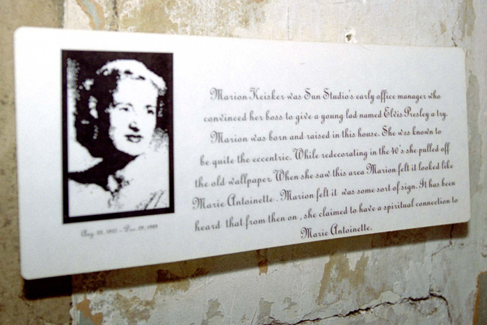 Perhaps Marion Keisker lost her head one too many times at Sun Studio but time has granted her a title as Sam's "business partner" somewhat after the fact. She took her screen door with her the day she left Sun which might tell you something of her resolve. There are no movies on Marion. I would like to correct that someday as I have visited with Marion's energy in that front office at the Memphis Recording Service well over 3,000 times being a tour guide there since July 22nd, 2003.