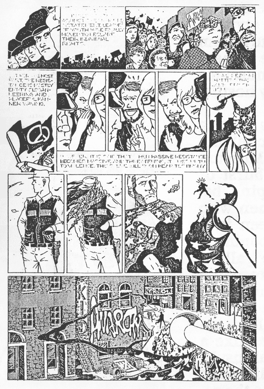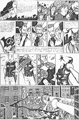 The Captain soon became a kid. It had too. We populated the story with refreshing stereotypes and the rest is history ... our history anyway. The kid represented a tiny span of time. The late '70's to the early '80's. The time in which it took him (and us) to grow up. JUNKIE RATS was for an issue of FALLOUT (that free-thinking journal of the Eighties that poked anarchy at Ronald Reagan. And of the publisher/artist of that paper we can only ask, "Winston Smith, where are you?" The Dead Kennedys can no longer be reached for an answer.