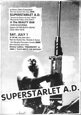 Some background: The Memphis I left behind for a mere three weeks was not the same when I returned. Perhaps I was just more clearheaded. Earlier in the year, on May 5th, at Last Place On Earth , the Memphis premier of SUPERSTARLET A.D. + ELVIS MEETS THE BEATLES was the first time I had lost money on a show. It would be another four years before I would show BROAD DAYLIGHT and even that film required a same-day venue change.