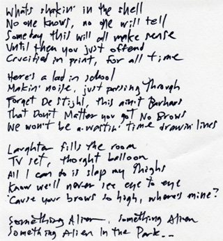 In the late Summer of 1984, when I moved in with GEORGE COLE at 189 North Auburndale, he surprised me with the "Something Alien In The Park" article, by blowing up to 3 feet by 4 feet and framing it. We thought highly of LaBadie because he had given us a welcome to Memphis - and a challenge at the same time. George eventually wrote a song called SOMETHING ALIEN IN THE PARK. Had FINGERS LIKE SATURN lasted long enough, we might have gotten around to recording it.