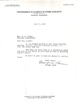 (Note 2: Georgia Tann changed my mothers birthday to make her younger and more adoptable. According to the book BABY THIEF by Barbara Raymond, Tann did this to lots of children. Sort of like turning back the mileage on a car. We had always celebrated my mothers 'false" birthday of February 1 when later in the eighties she found out her real birthday was February 28. Such a slight change also suggests that my Mother was not born in 1922 as she always believed but earlier perhaps 1921 or 1920. We will never know. However according to scraps of documents obtained via the state of Mississippi I do know that my mother Mildred was adopted away from Georgia Tann and the Memphis Orphanage in 1930. If she was really born in 1922 she would have been 8 years old which meant that she spent three years in the Memphis Orphanage under Georgia Tann (the year of the nation wide depression (1929) she spent alone in the absence of her brother, Mildred suffered her own personal depression.) Her true and actual birth year will always be a bit of a mystery.