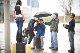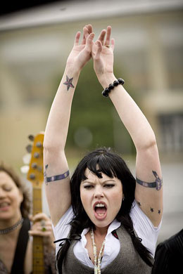 As we shoot the 16mm film portion for our video "EIGHTEEN WITH A BULLET", BETTY BUTCHER (along with JOHNNY ODDSBLOOD, LIPSTICK PICKUP and myself; THIN WHITE TRASH) rock out on the very spot where I peed that night in the Coliseum parking lot 27 years before.